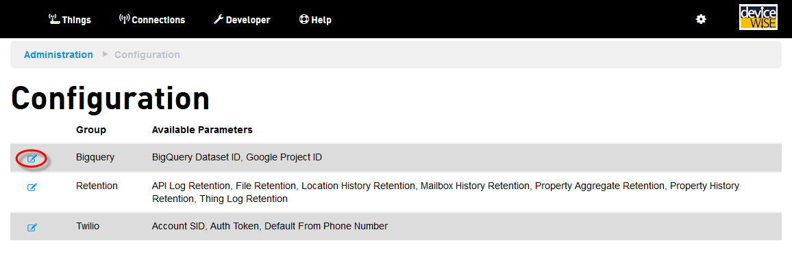 单击 BigQuery 组旁的 Edit(编辑)图标: