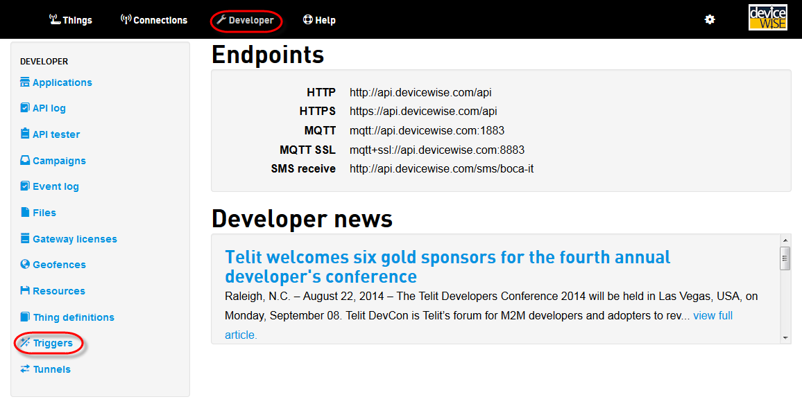 - 选择 Developer(开发者)导航链接,然后在左侧菜单中,选择 Triggers(触发器)。