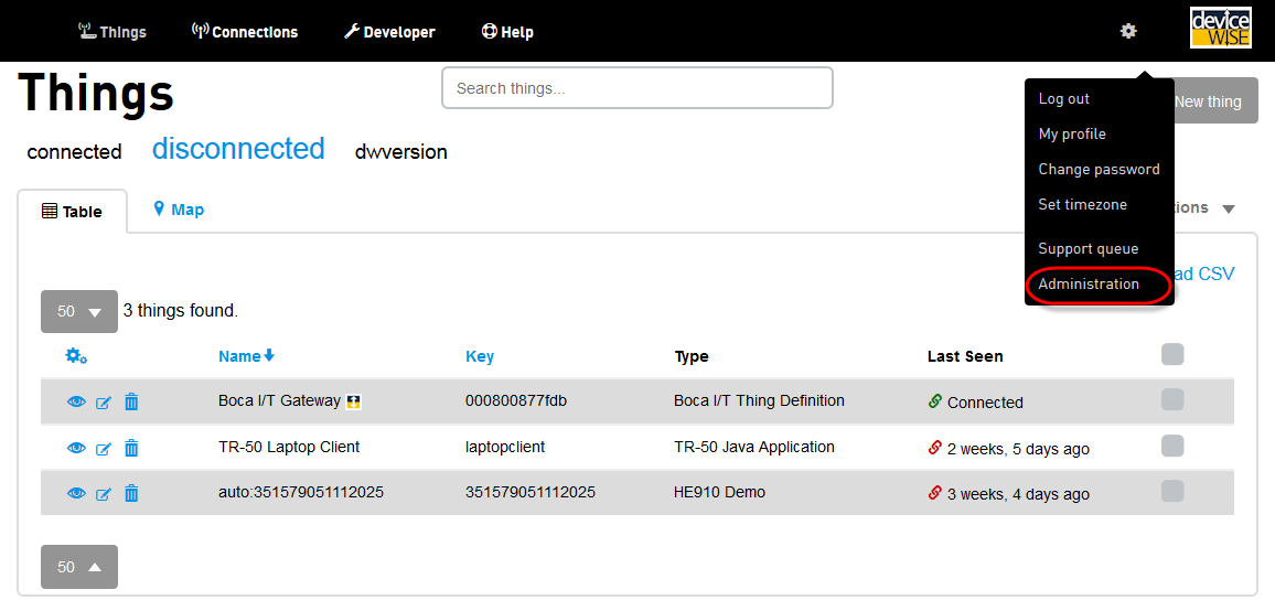 - 选择 Tools(工具)图标,然后选择 Administration(帐户管理):