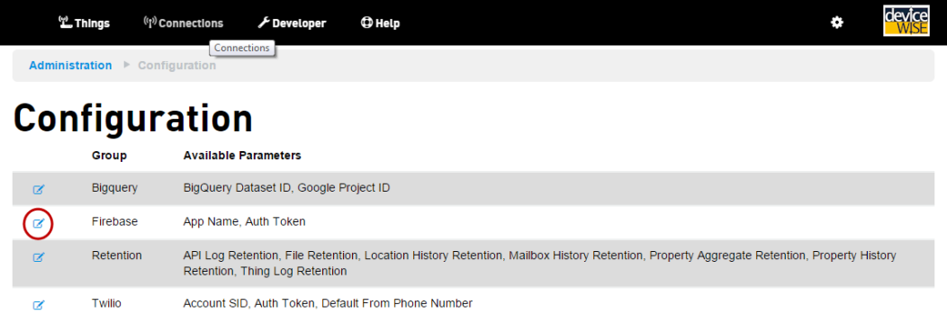选择 Firebase 组旁的 Edit(编辑)图标: