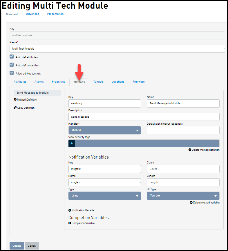 现在您就可以在 Thing's Method(物的方法)选项卡中看到新的方法 - 单击新按钮发送消息