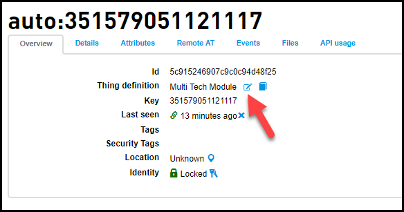 - 您的模块已连接至物联网设备管理门户并注册为物。