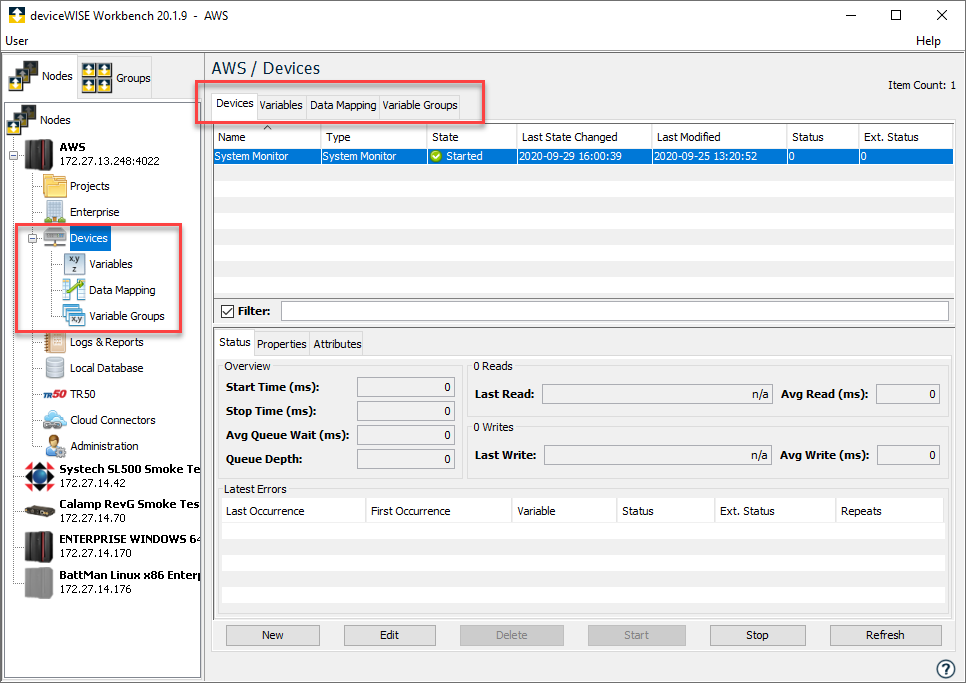 当代表物理设备时,通信接口信息可以包括 IP 地址、TCP 端口、通信超时以及设备内变量的大小和类型等属性。 - 只驻留于系统运行时中的逻辑设备,如全局变量设备。