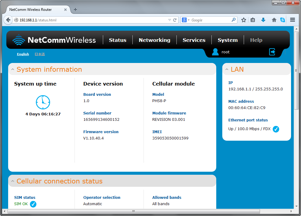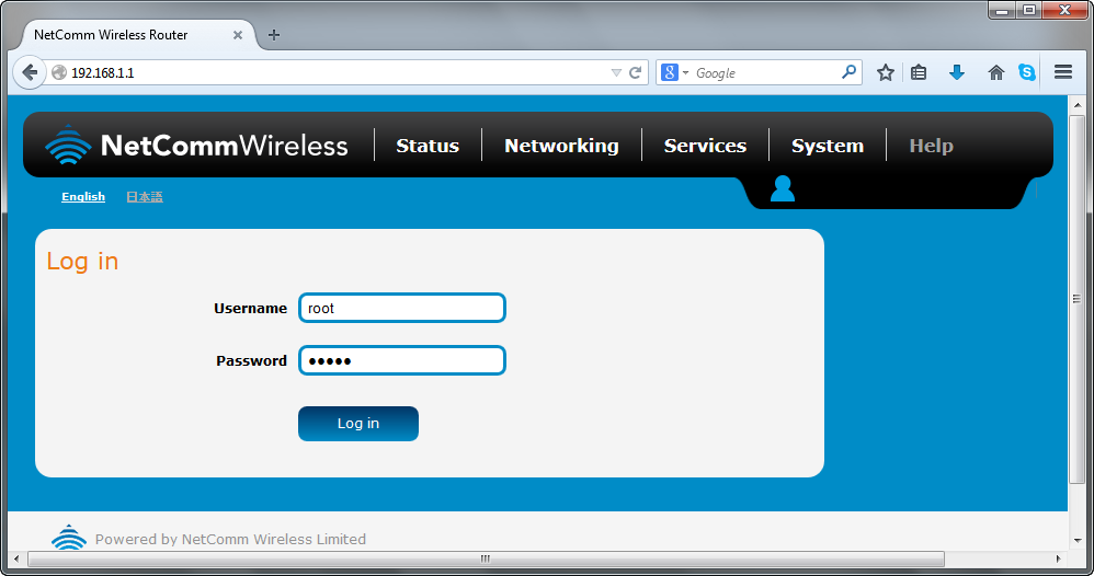 - 通过在 Web 浏览器的地址栏中输入 192.168.1.1,使用 Web 浏览器访问默认 IP 地址的 NetComm 无线路由器。