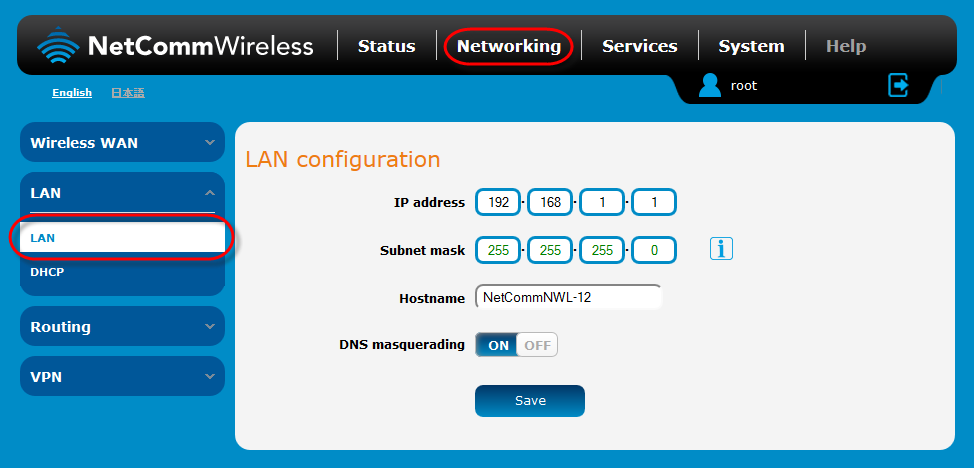 您将必须在 Web 浏览器的地址字段中输入新 IP 地址,以使用新 IP 地址访问 NetComm 无线路由器 Web 界面。 - 选择 Services(服务)菜单选项。