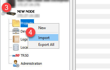 - 右键单击 Projects(项目)图标,然后单击 Import(导入)